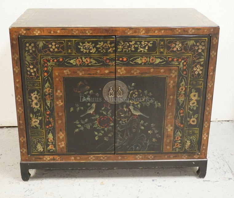 1349_CHINOISERIE DECORATED CHEST OF DRAWERS WITH 2 DOORS. 41 1/4 INCHES WIDE. 36